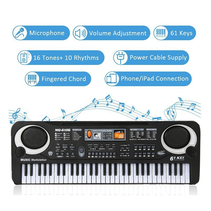 RIXTON 61 Keys Digital Piano Electronic Keyboard For Kids Electronic Piano Organ with Microphone
