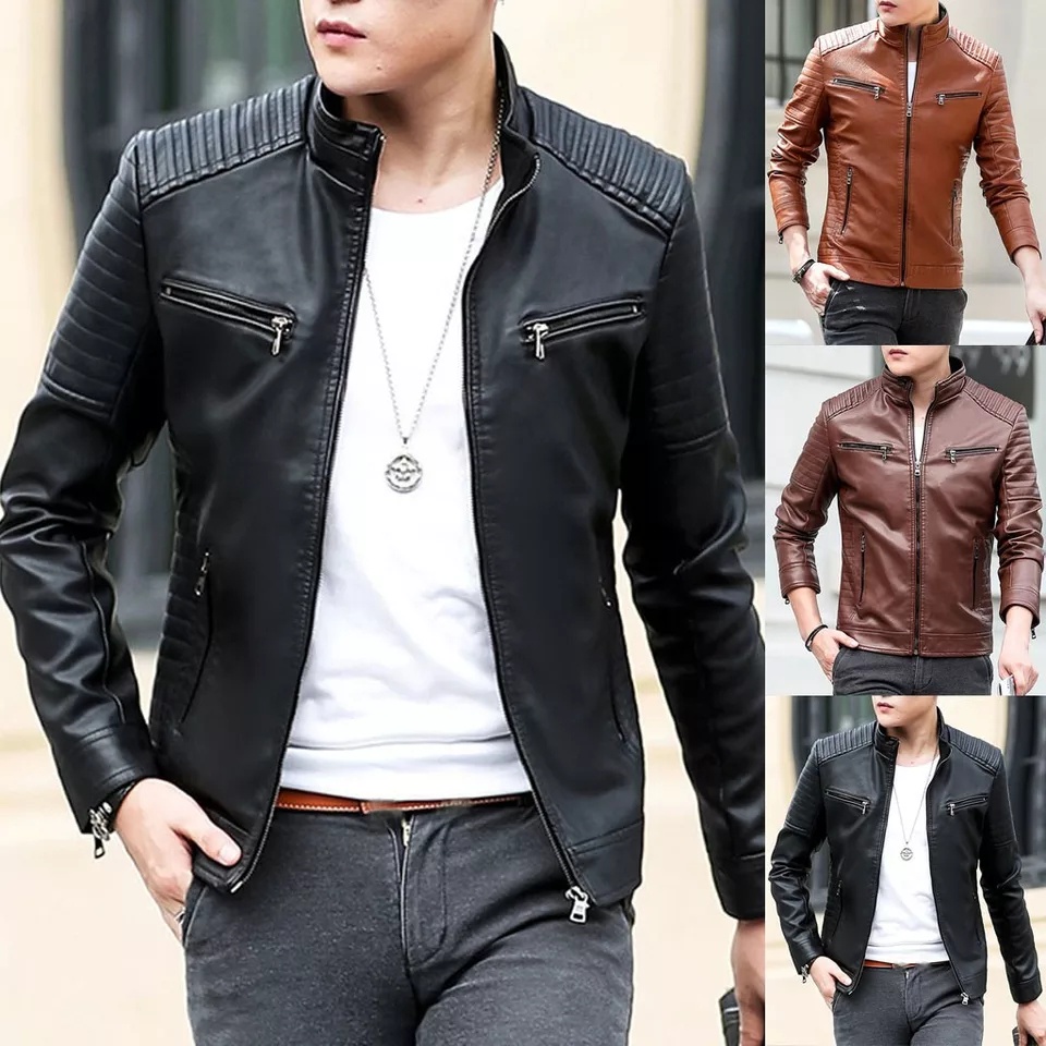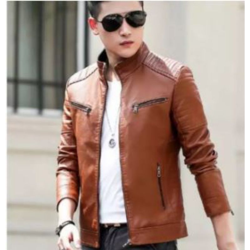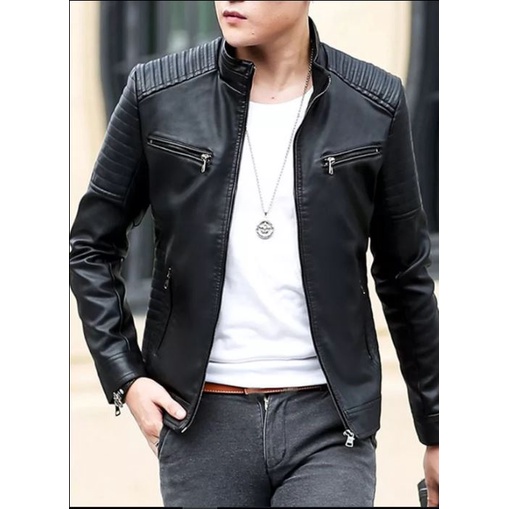 Jaket Semi Kulit Pria Motor hitam keren Nyaman Leather Slim Fit Waterproof
