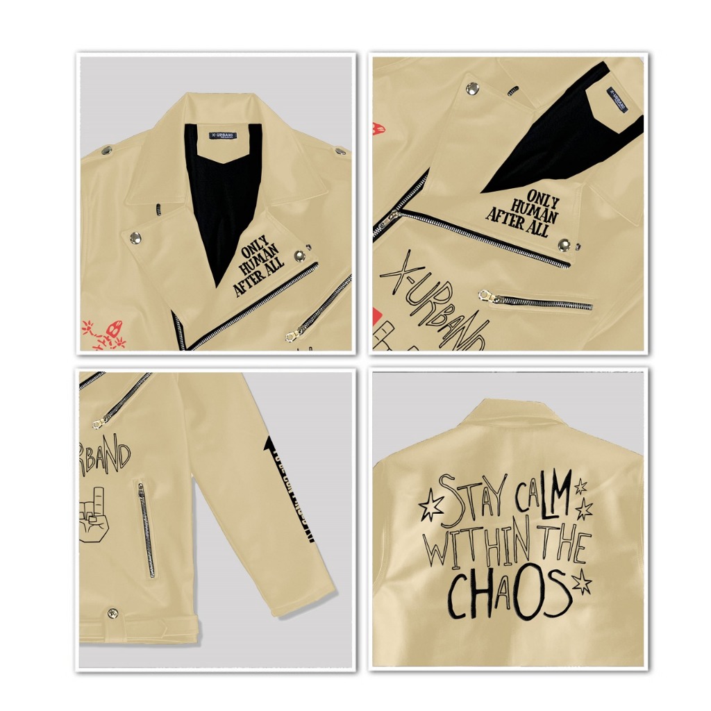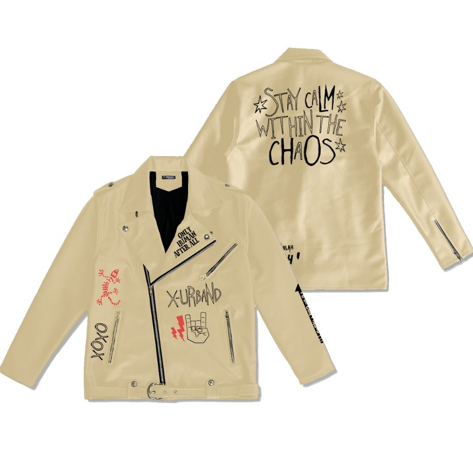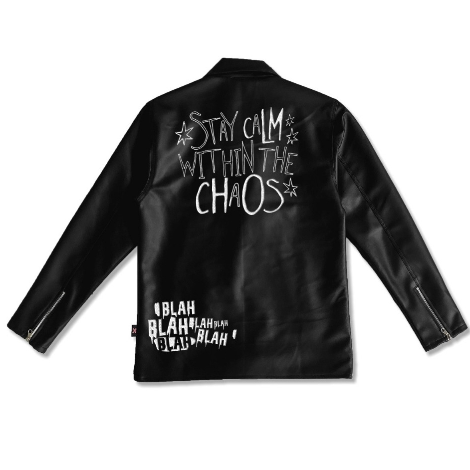 Dhozen Jaket Semi Kulit Colar Double Kragh Full Bordir