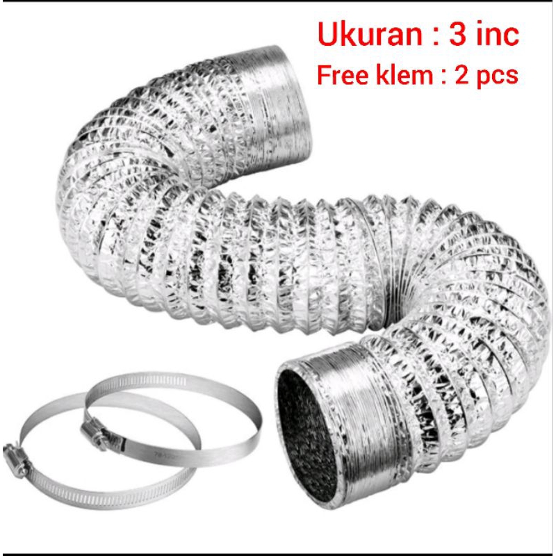 Flexible ducting 3 inc ( Paket 2 meter ) Free klem 2 pcs / pipa aluminum exhaust 3" / Flexible cerobong asap