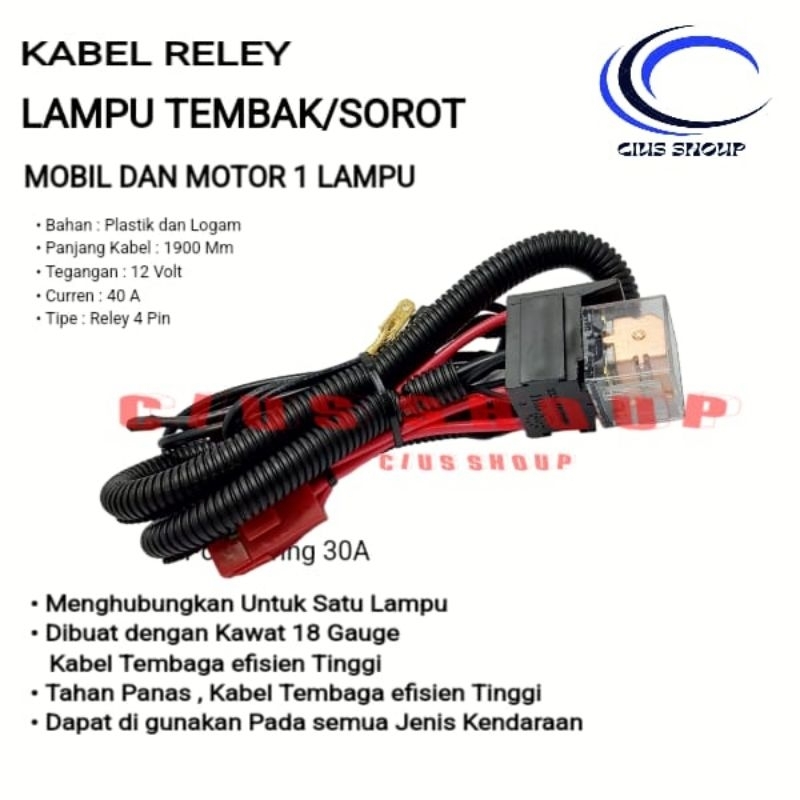 RELEY KABEL SET LAMPU LED TEMBAK / LAMPU LED SOROT HI LOW UNTUK MOTOR DAN MOBIL