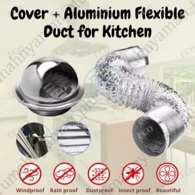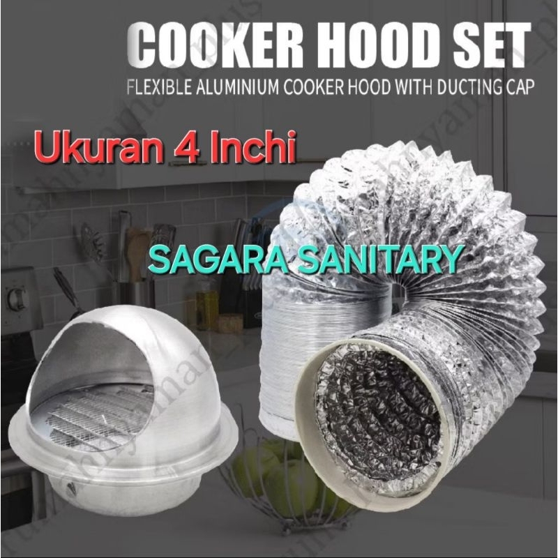Paket pipa exhaust 4 in (10,2 cm) + vent cap stainless + klem / selang pipa eksos sekai dll