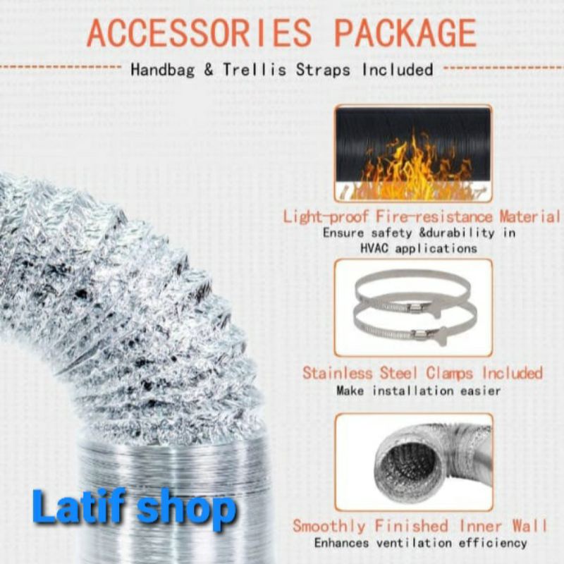 Flexible ducting 4 in (3 meter)/pipa exhaust aluminium 4 in free klem 2 pc