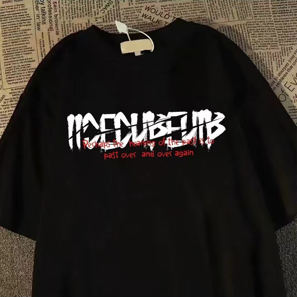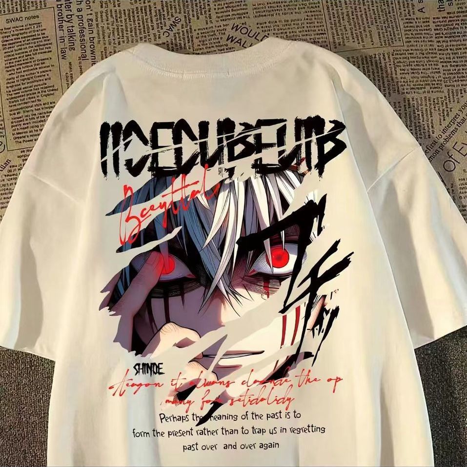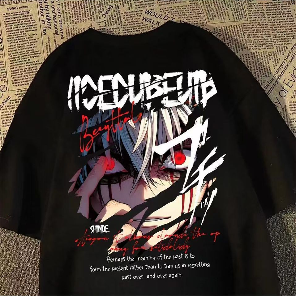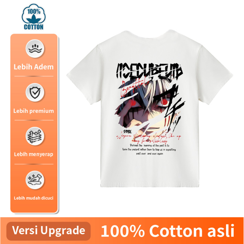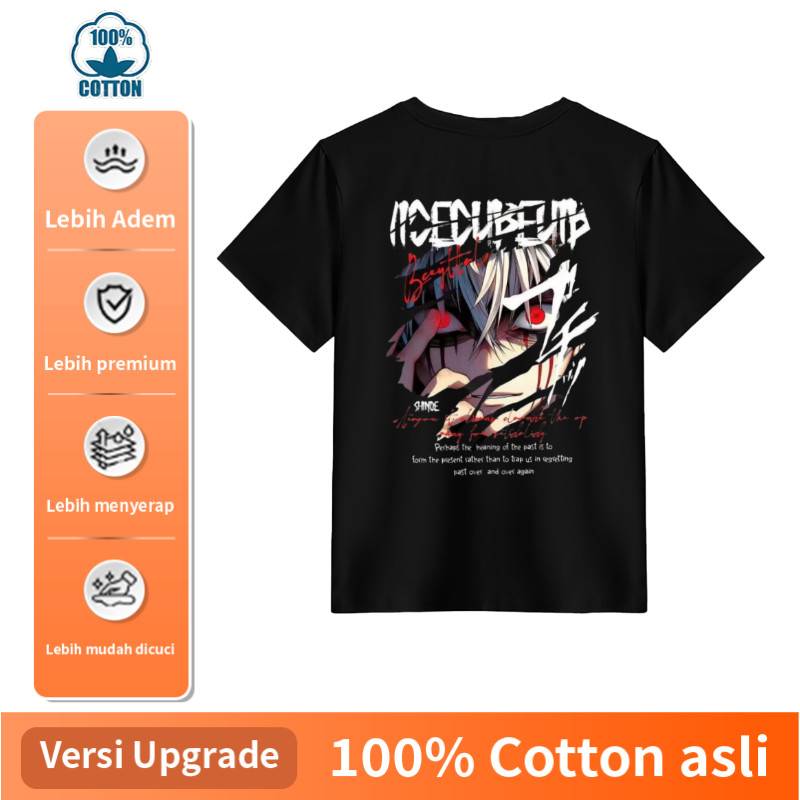 Kaos Lengan Pendek 100% Katun Murni Gaya Anime Gelap Jepang Musim Panas Santai Atasan Pria Lingkaran Leher Model Baru