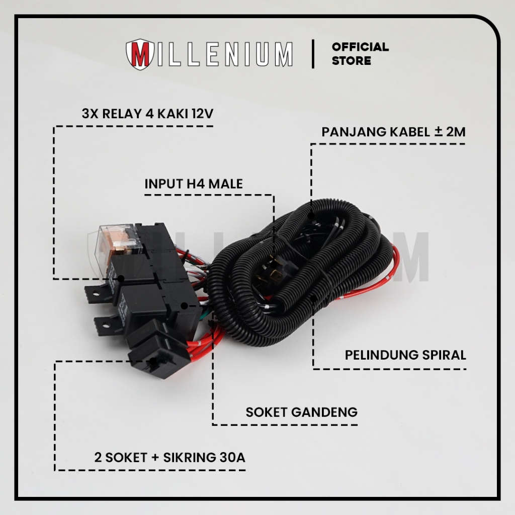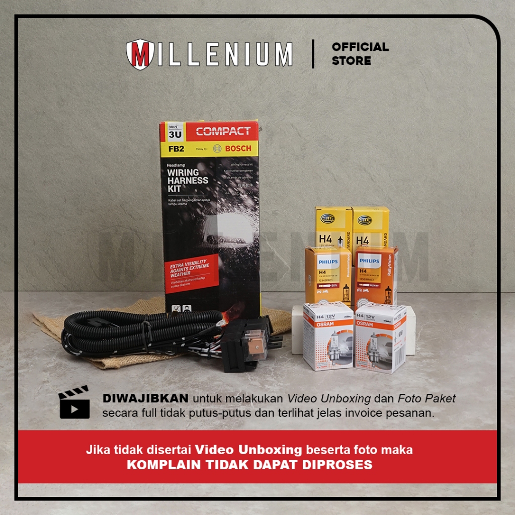 【COMPACT】Kabel Relay Set Lampu H4 Mobil BOSCH FB2 – 3 Relay 12V + 2 Lampu H4 Utama Mobil | Set Kabel Lampu Universal Ori