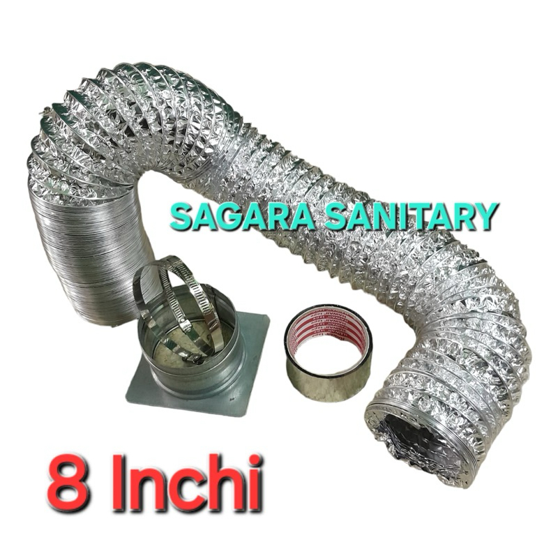 Paket instalasi pipa exhaust 8 in (20 cm) / paket flexible ducting 8" sok lempeng klem lakban