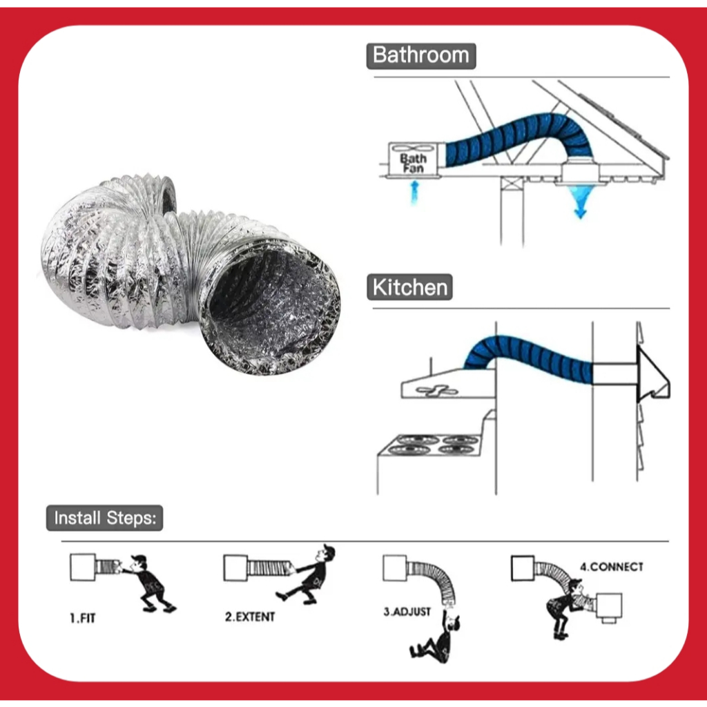 Fleksibel Ducting 6 Inch 10 METER Pipa Exhaust 6in Cerobong Alumunium Pembuangan Hawa Panas Cooker Hood AC Mesin CNC Pla