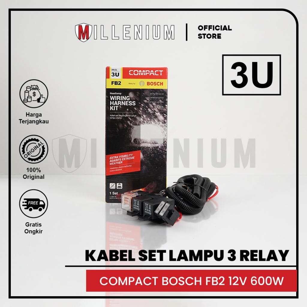 【COMPACT】Kabel Relay Set Lampu H4 Mobil BOSCH FB2 – 3 Relay 12V + 2 Lampu H4 Utama Mobil | Set Kabel Lampu Universal Ori