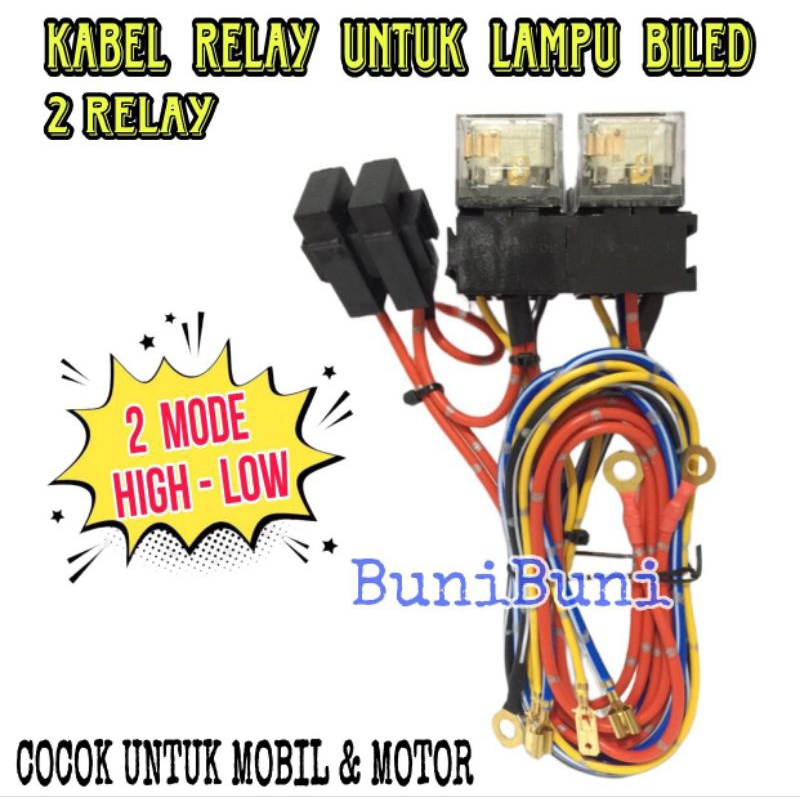 KABEL RELAY LAMPU TEMBAK BILED PROJIE TIPE 2 MODE HIGH LOW Untuk MOBIL / MOTOR
