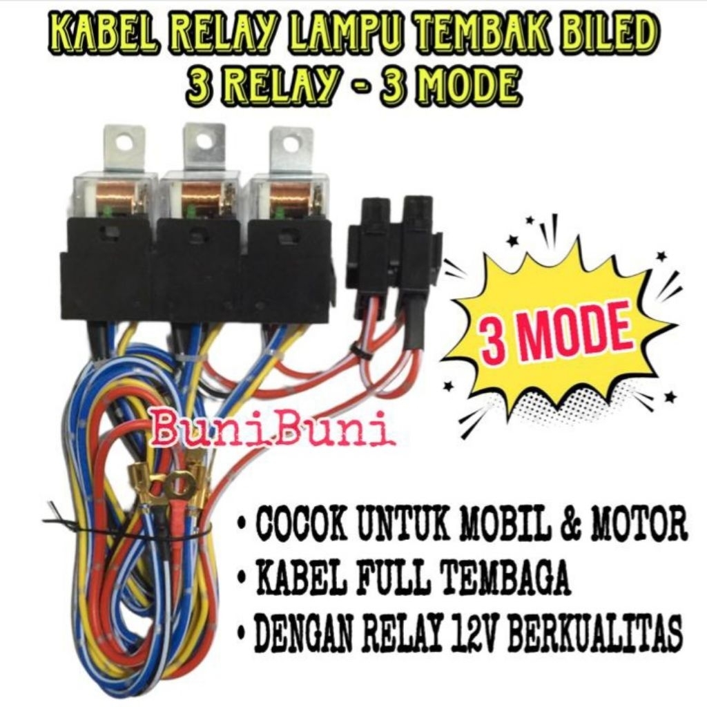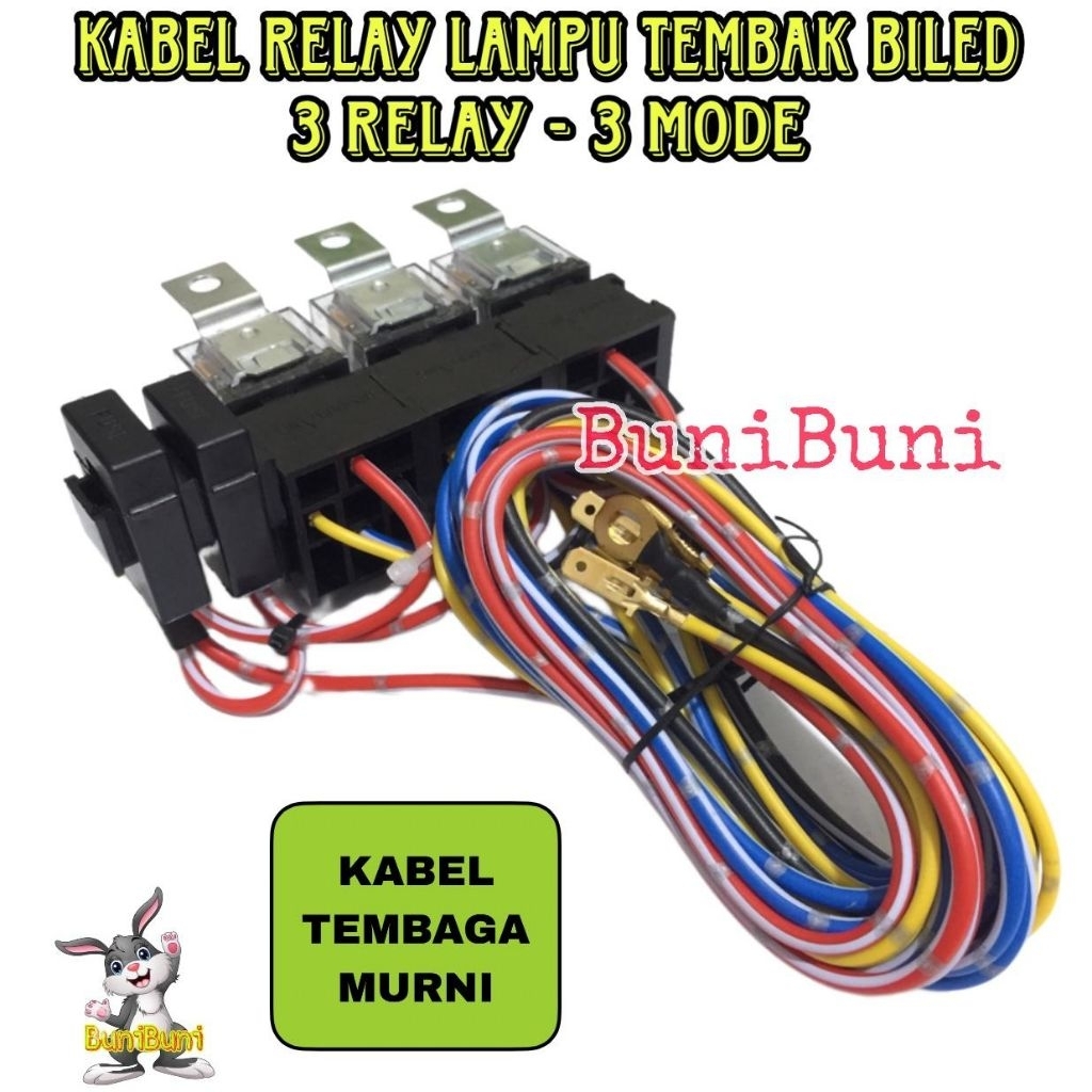 KABEL RELAY 3 MODE / KABEL SET LAMPU TEMBAK BILED PROJIE TIPE 3 MODE Untuk MOBIL / MOTOR 12V