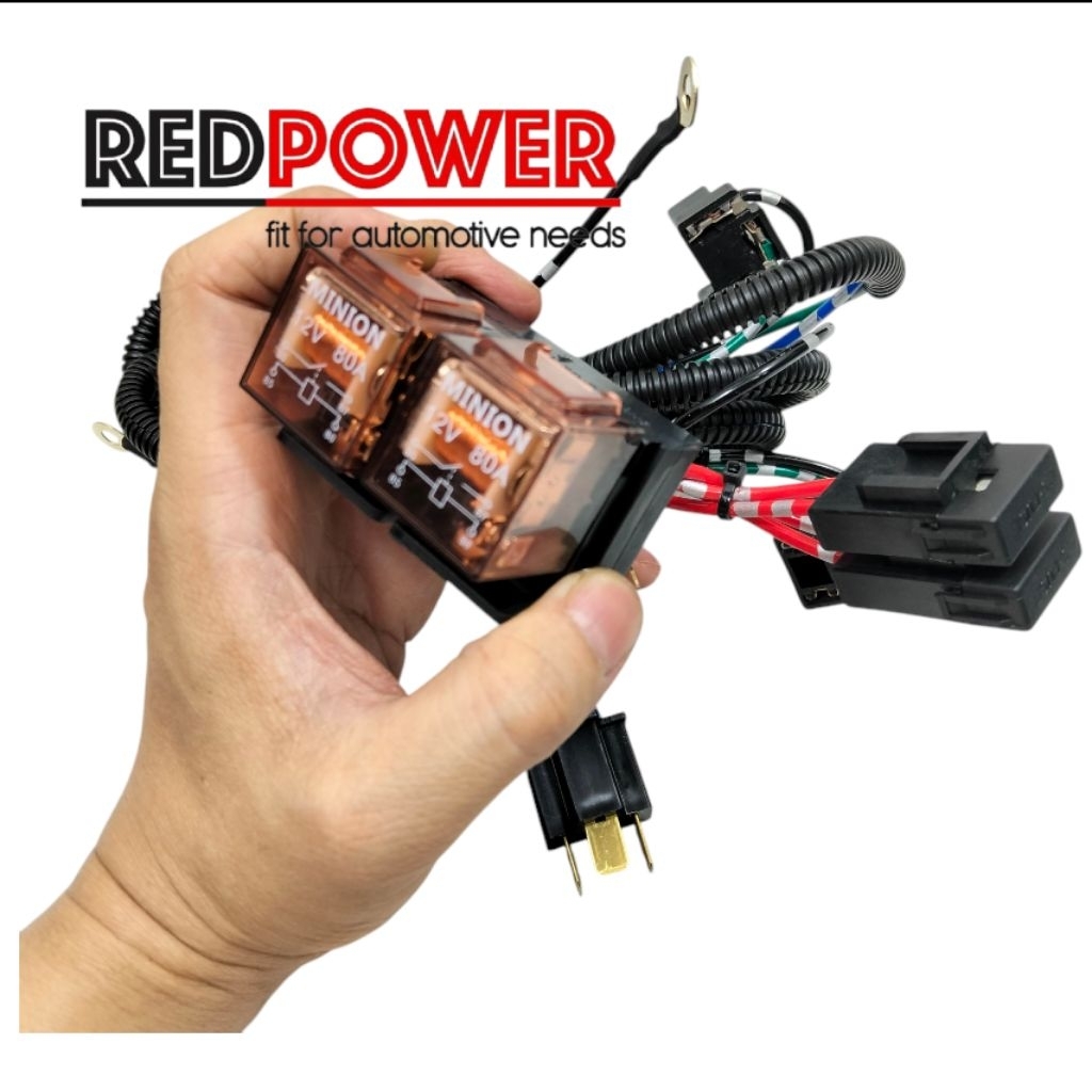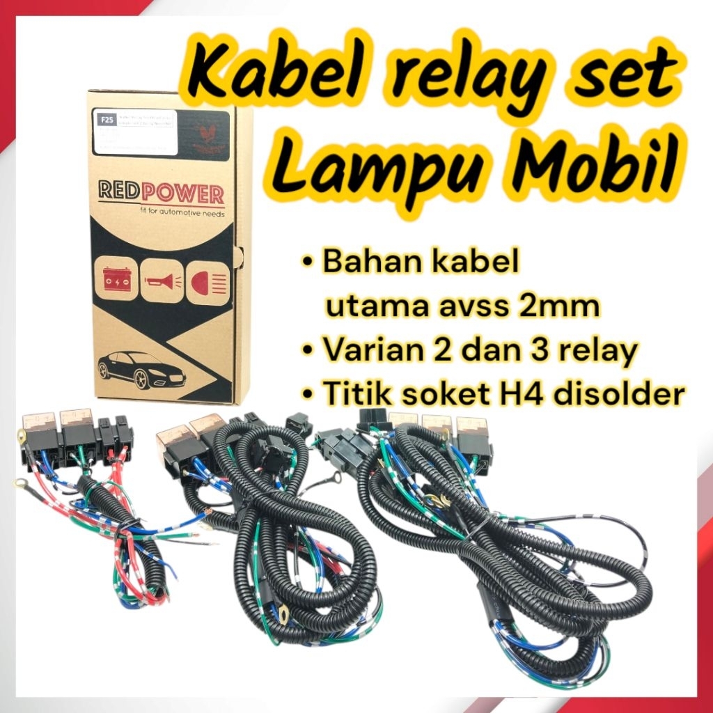 Kabel relay set lampu H4 mobil low hi beam jauh dekat redpower berkualitas pnp plug and play universal semua mobil 12v H