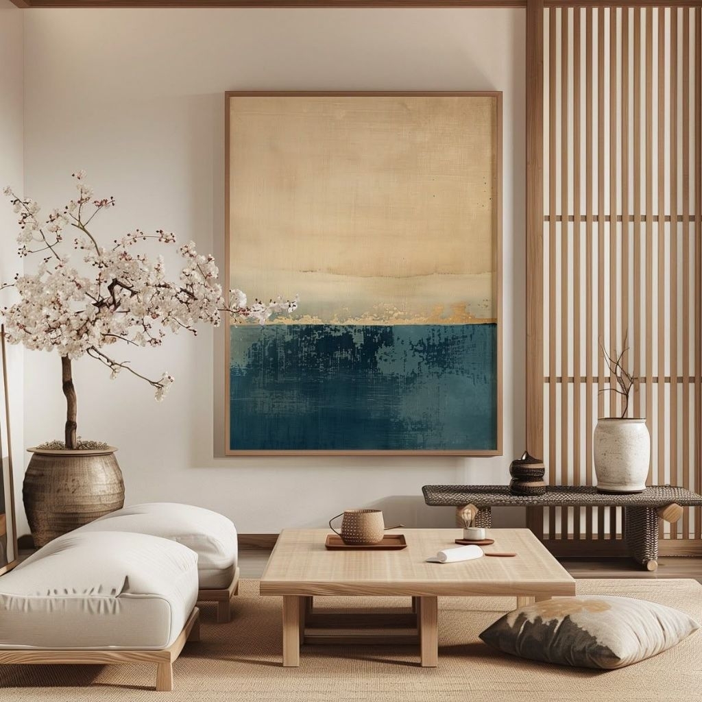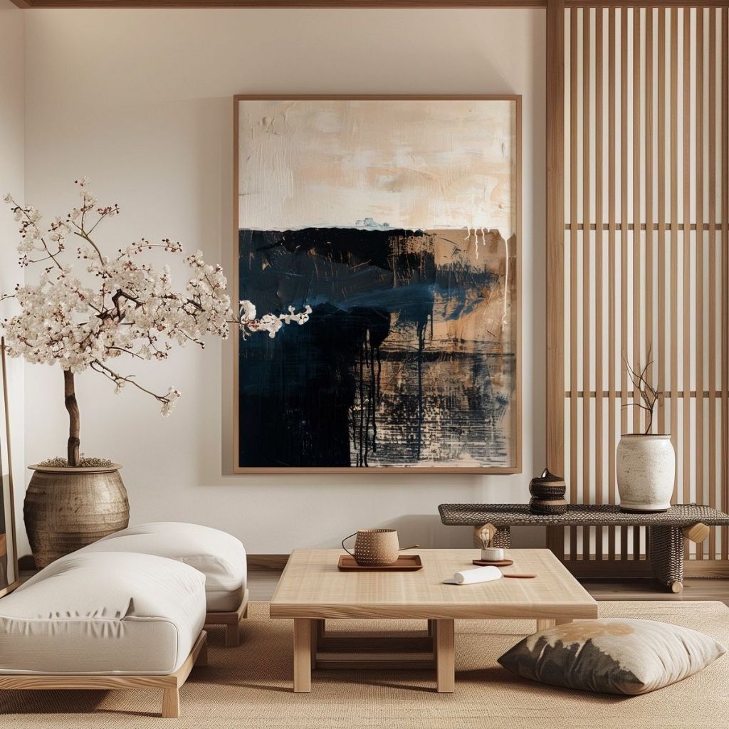 LUKISAN ABSTRAK MODERN ROOM MINIMALIS JAPANDI ASTHETIC ESTETIK RUANG TAMU KAMAR HIASAN DINDING TERLARIS (Include frame)