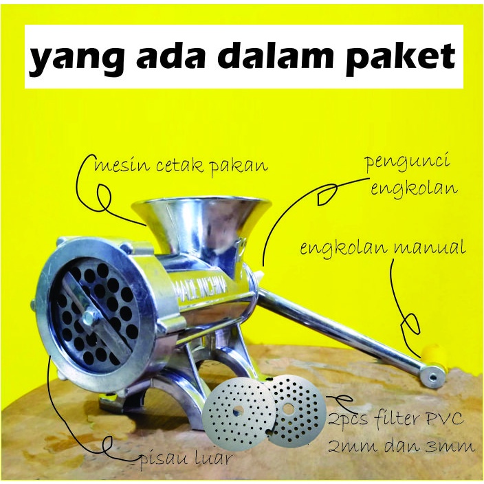 Mesin Cetak Pelet No.12 Pisau Luar Mata 2 Bonus Saringan PVC Mesin Pencetak Pelet Pakan Voer Ayam Ikan Burung
