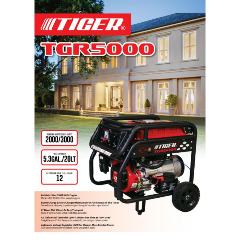Mesin Genset 7 + Aki 3000 Watt 4 Tak Double Stater Tiger TGR 5000