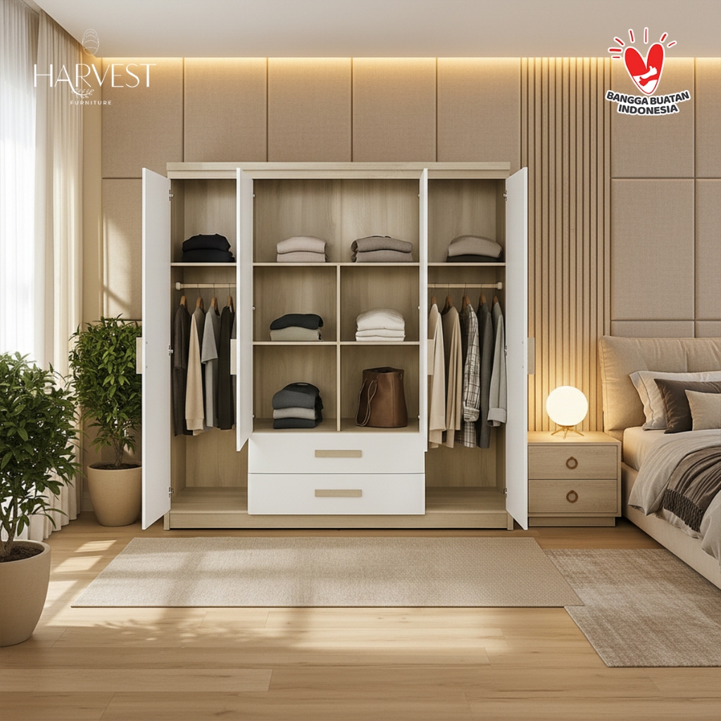 Lemari Pakaian Baju 4 Pintu Murah Modern Minimalis