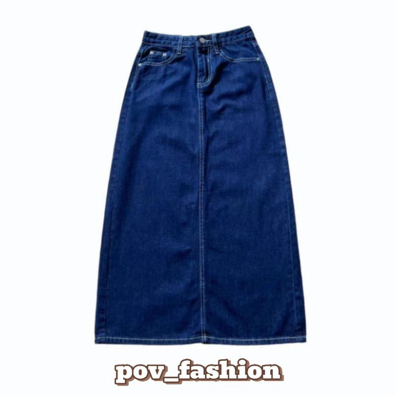 Highwaist Rok Jeans A-Line 7/8 Wanita Basic Skirt