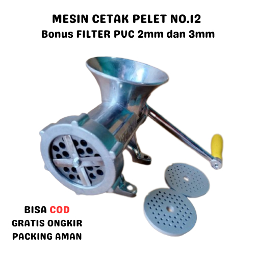 Mesin Cetak Pelet No.12 Pisau Luar Mata 4 Bonus Saringan PVC 2mm Dan 3mm Mesin Pelet Pakan Ternak