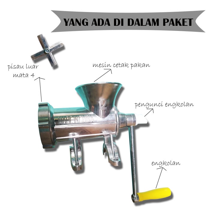 Mesin Cetak Pelet No.12 Pisau Luar Mata 4 Bonus Filter PVC Mesin Pencetak Voer Ayam Ikan Burung Manual