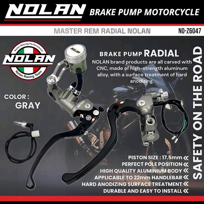 Master Rem Nolan Radial 1 Tabung Sepasang Kanan Dan Kiri Lengkap Switch Rem Universal Motor - Full Hitam, Nolan Radial