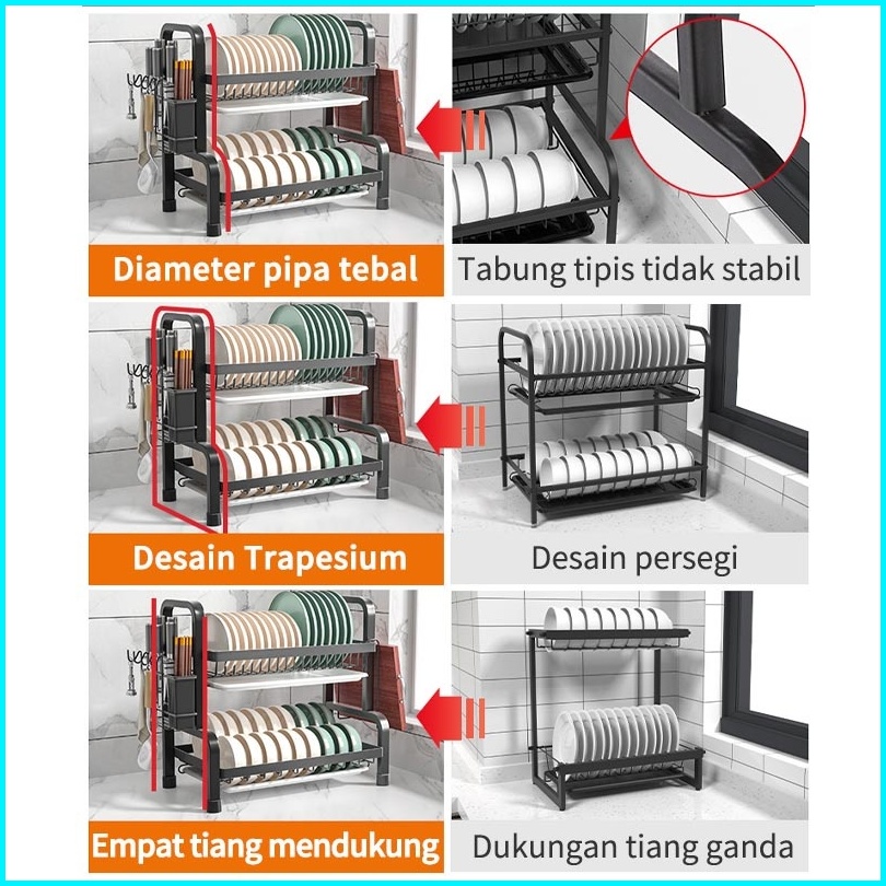 Xuxu Rak Piring Stainless Steel Rak Piring Wastafel Rak Cuci Piring Dapur Rak Pengering Piring