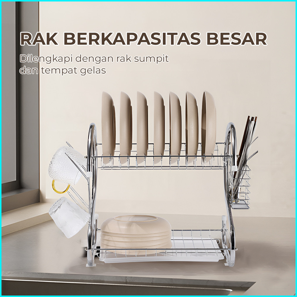 Homeluxe Rak Piring Stainless 2 Susun Rak Piring 2 Tingkat Stainless Rak Dapur Serbaguna