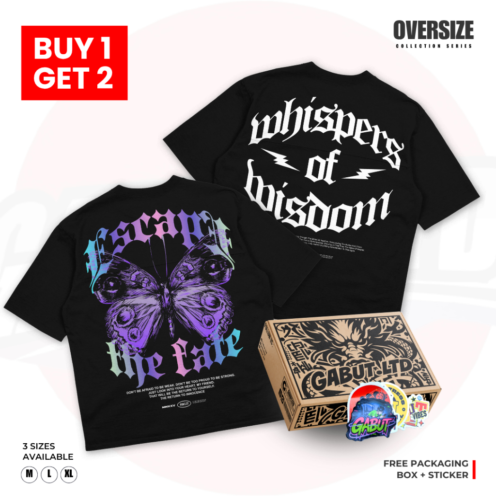 [GABUT] - Paket Bundling 2pcs Baju Kaos Oversize Unisex Motif ESCAPE THE FATE dan WHISPER OF WISDOM Bahan Cotton Combed