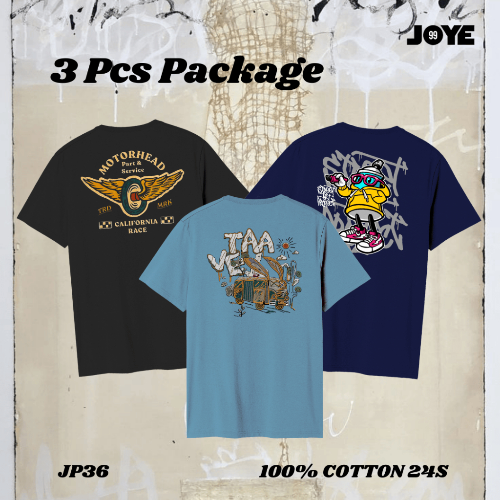 JOYE / T-SHIRT 3 PCS PACKAGE / Kaos Distro Original / Baju Kaos Distro Pria / T Shirt Distro 100% Cotton 24s Unisex / PA