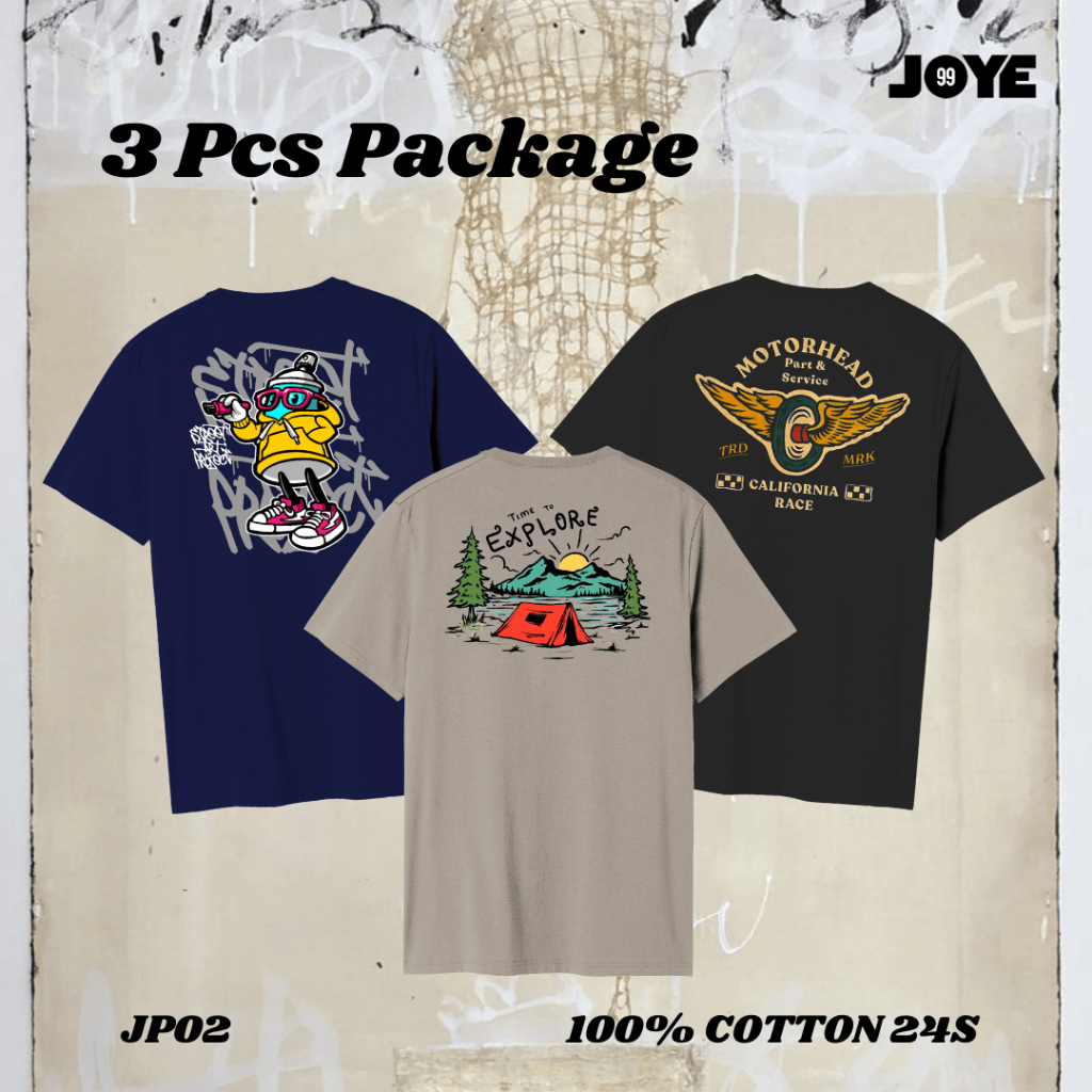 JOYE / T-SHIRT 3 PCS PACKAGE /Kaos Distro Original / Baju Kaos Distro Pria / T Shirt Distro 100% Cotton 24s Unisex / PAR