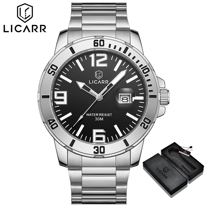 LICARR Jam Tangan Pria Mewah Kuarsa Stainless Steel Business Anti Air Santai Olahraga Tanggal Jam Tangan Cowok Original 9524