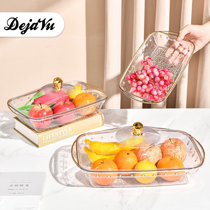 Dejavu Wadah Saji Makanan Dengan Tutup Transparan Tempat Nampan Piring Buah Estetik HSB857