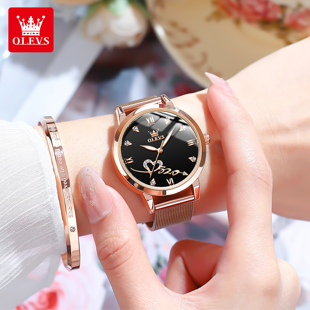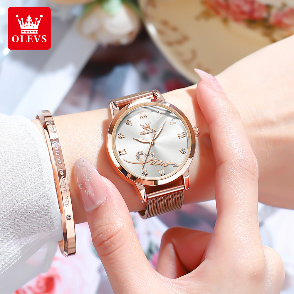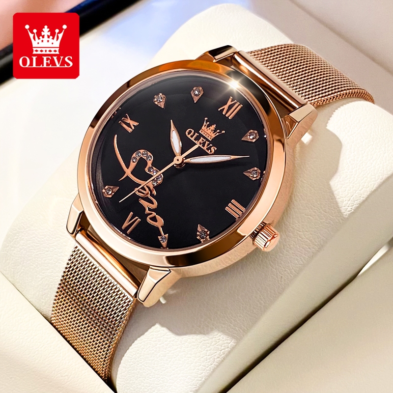 OLEVS Jam Tangan Wanita Anti Air Original Terbaru 2025 Hadiah Mewah Set Anti Karat Elegan Kalender Analog Rose 90ld Women