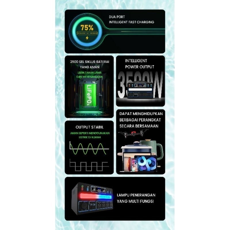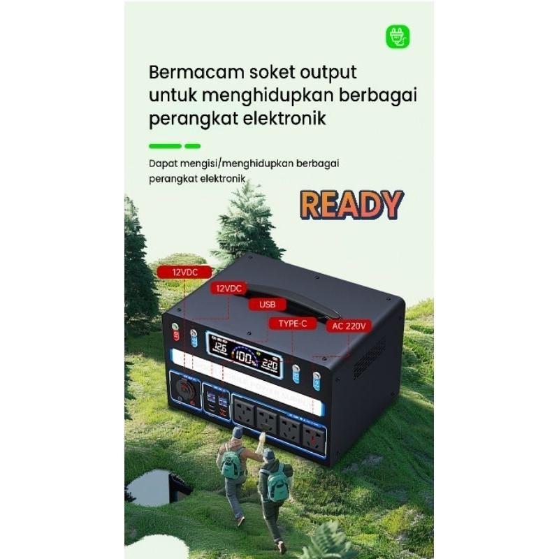 Solar Generator Listrik Mini Genset Portable Power Station 220V 400W/500W/800W/1200W/1700W/2600W Battery 50000mAh/90000m
