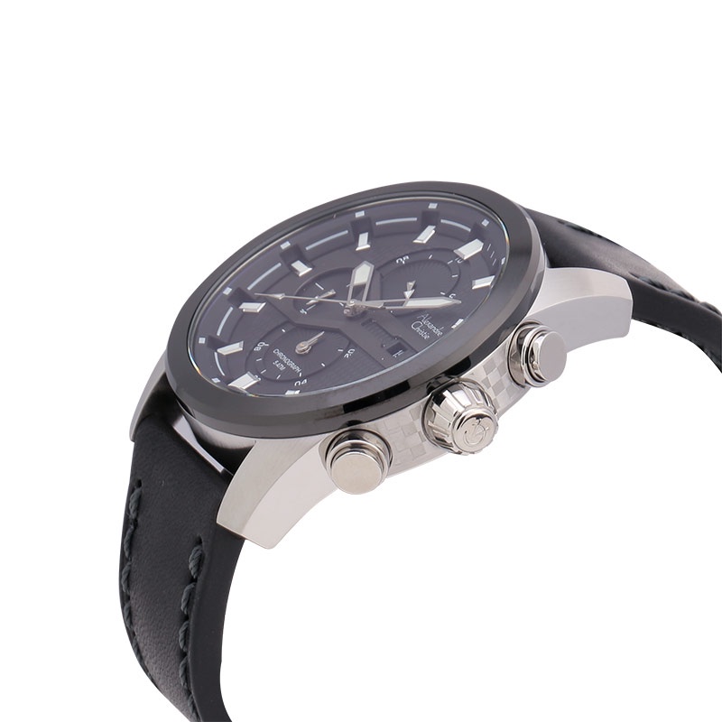 Jam Tangan Pria Alexandre Christie Chronograph AC 6562 MC LTBBA Men Black Dial Black Leather Strap