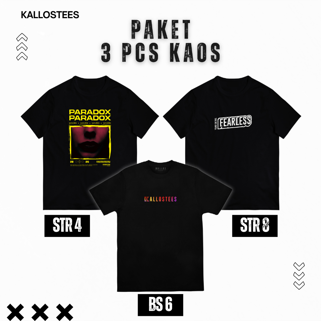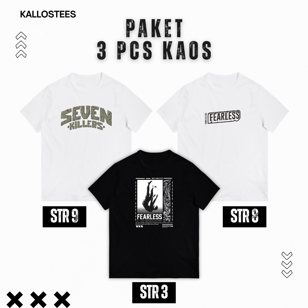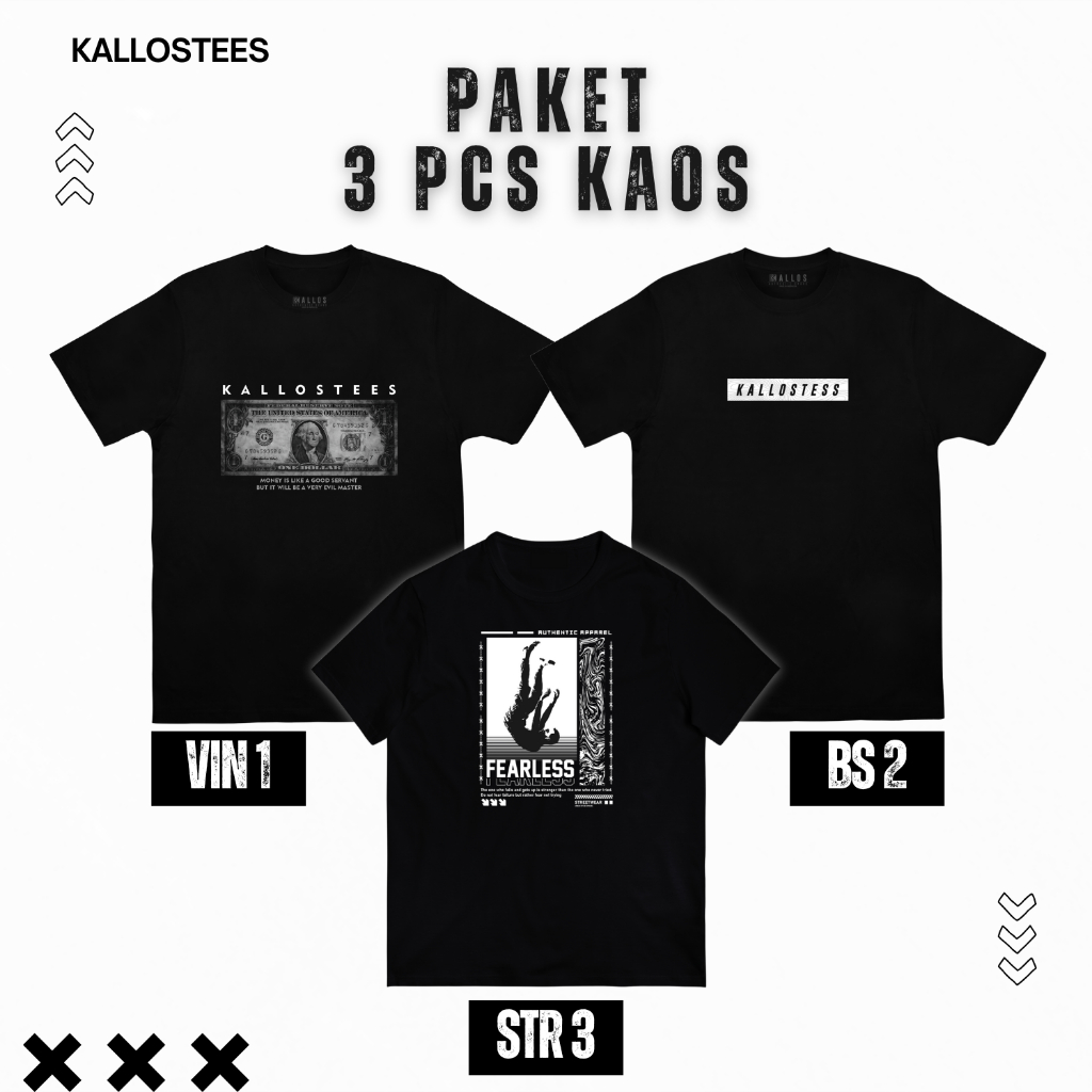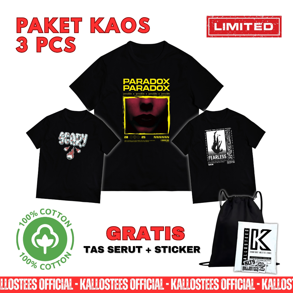 BUNDLING 3 Kaos FREE TAS SERUT Hitam Putih Distro Streetwear Cowok Unisex – T-Shirt Katun Combed 24s KALLOSTEES