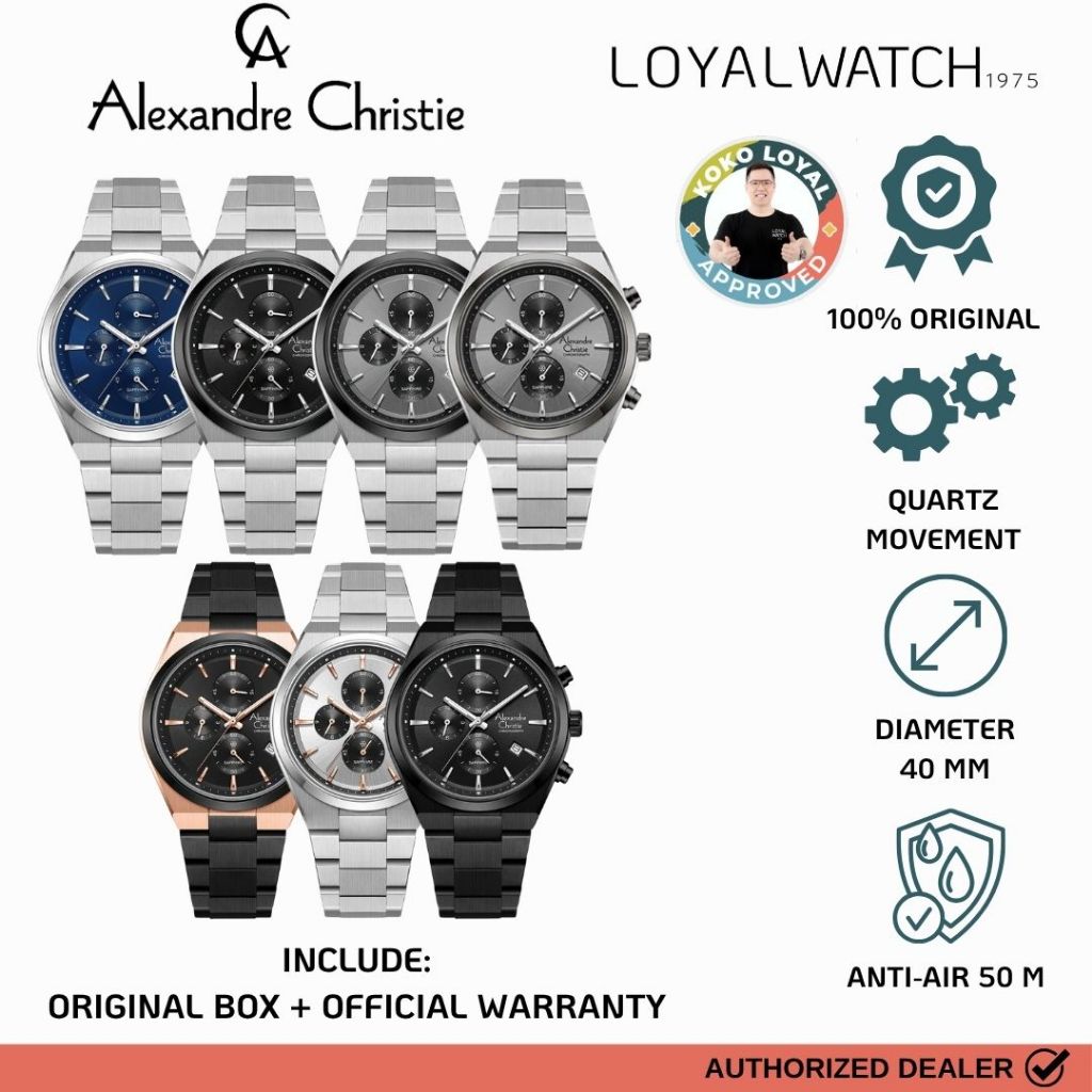 Jam Tangan Alexandre Christie Classic Steel Pria 8697 MCB Chronograph Stainless Steel Original Garansi Resmi