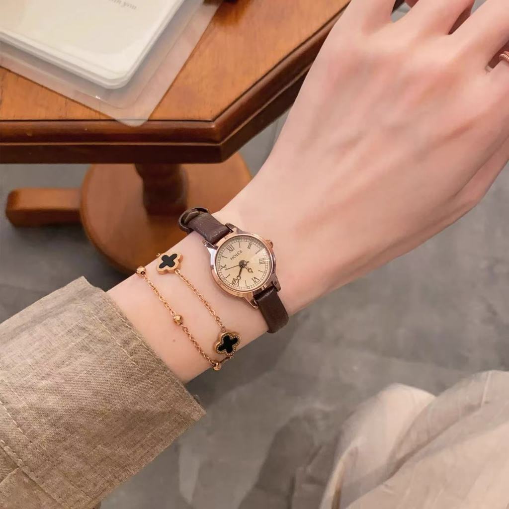 HOLEK 1401 Jam Tangan Wanita Korea Antik Panggilan Mini Anti Air Tali Kulit Jam Tangan Cewek