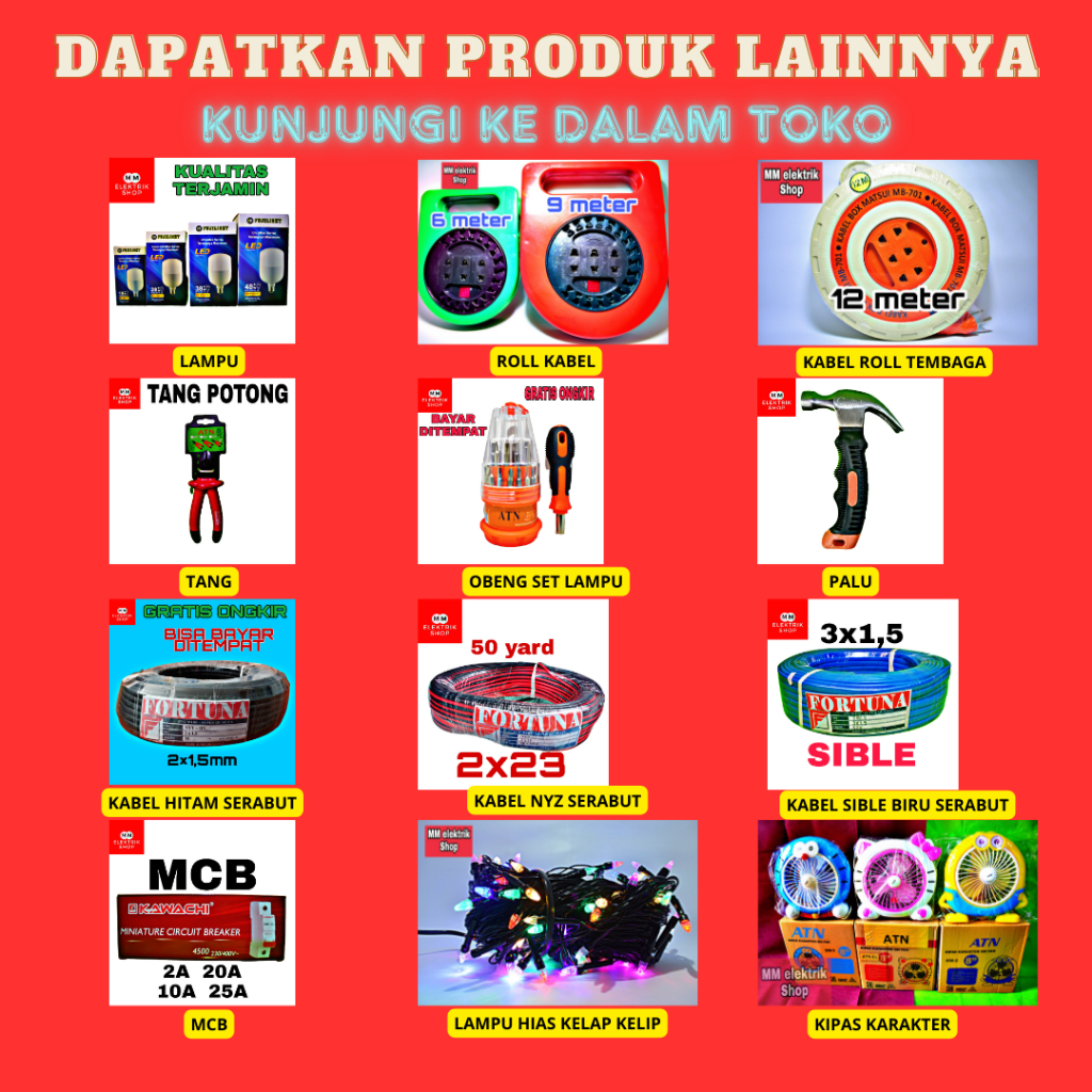 10 yard+ LAMPU(4mtr), 10 yard+Saklar(4mtr), 15 yard+ LAMPU(8mtr), 15 yard+Saklar(8mtr)
