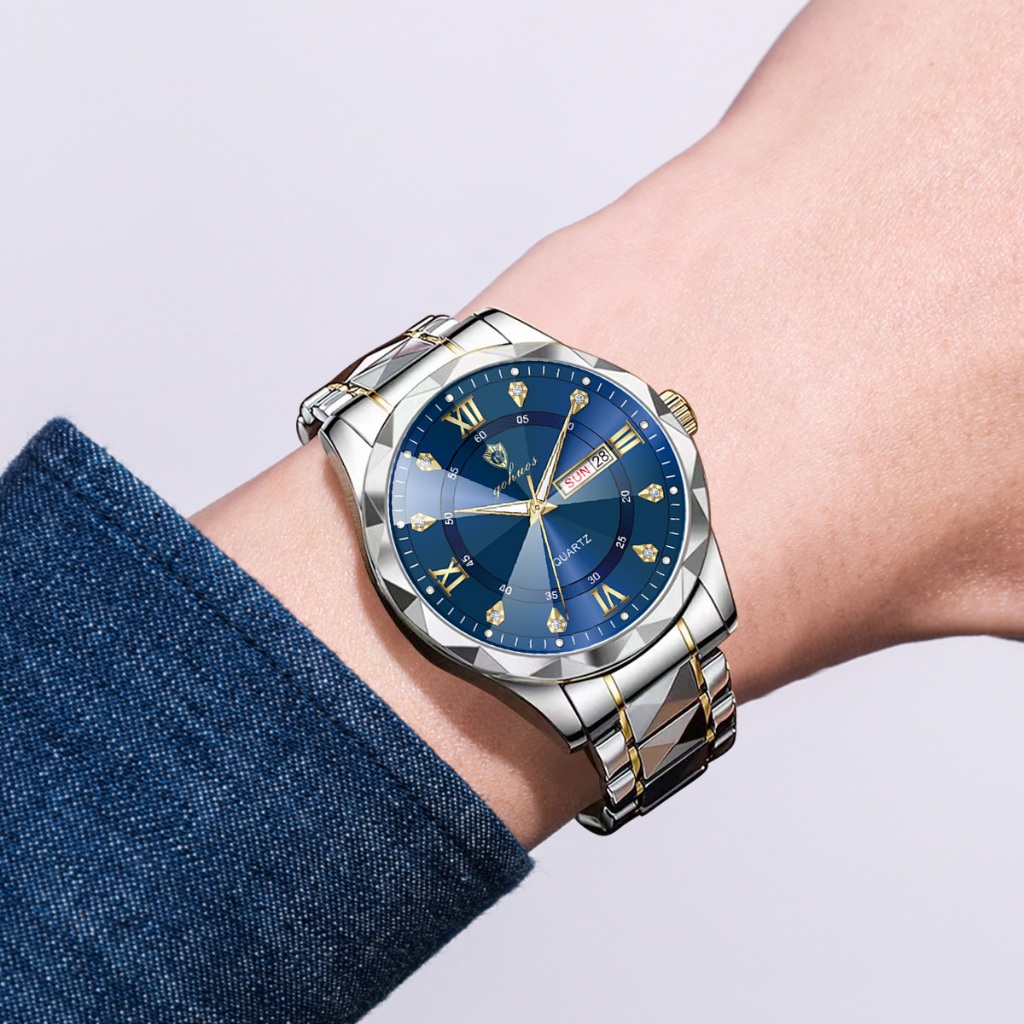 GOHUOS Jam tangan tahan air pria asli rantai fashion fashion mewah baru jam tangan stainless steel pria cash on delivery