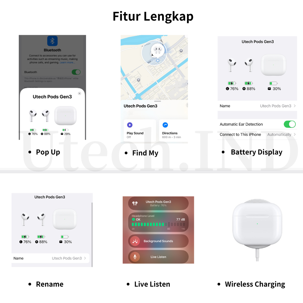 Utech TWS Pods Gen 3 Earphone Bluetooth Headset Bluetooth 9D HiFi Stereo with Mic Wireless Earbuds henset bloetooth Head