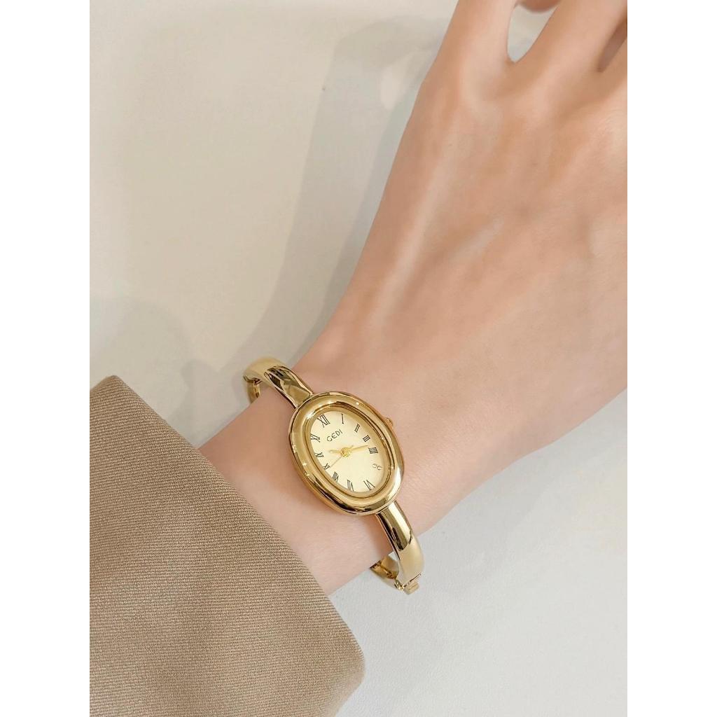 Jam Tangan Wanita Model Gelang Bracelet Oval Egg Jam Cewek Korea Stainless Steel Watches