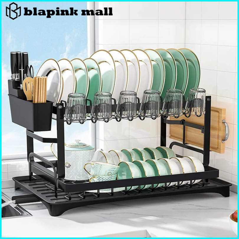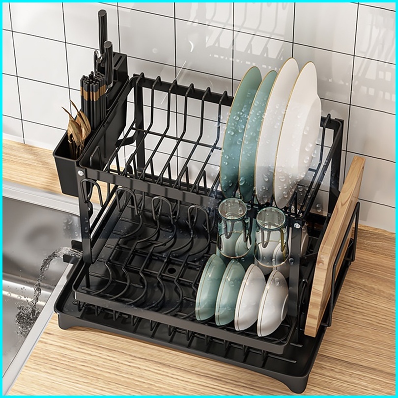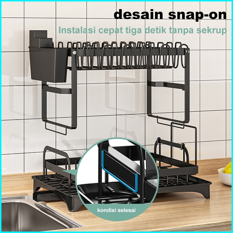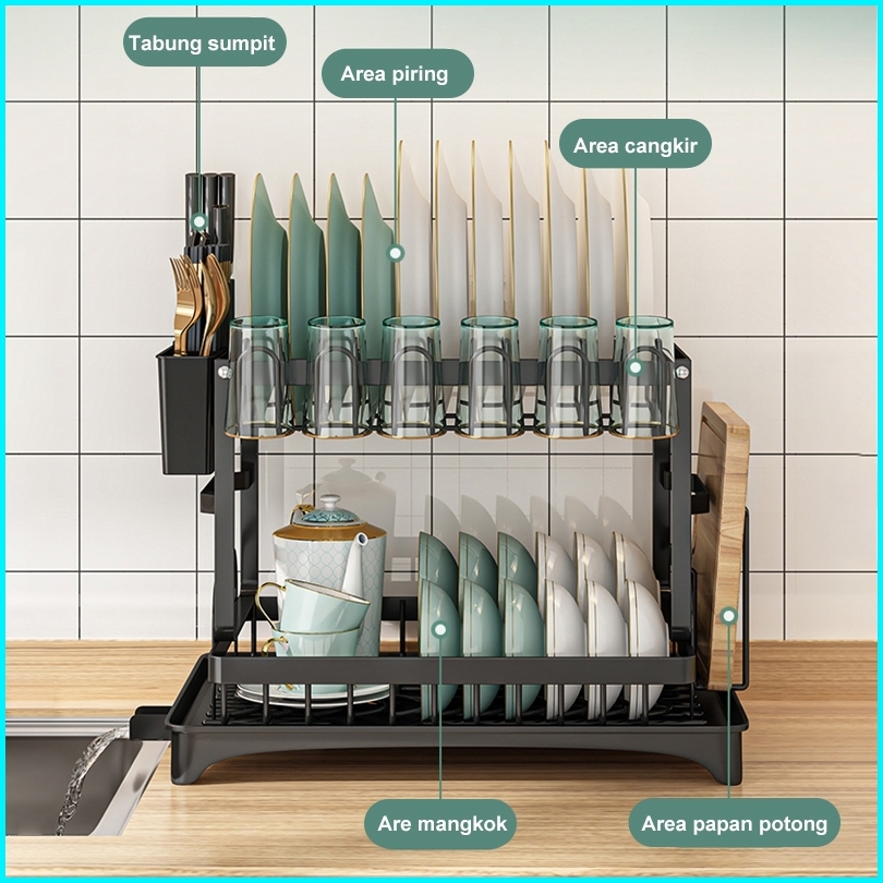 Rak Piring Dapur Stainless Steel Rak Peniris Dengan Baki Rak Piring Lipat Rak Penyimpanan