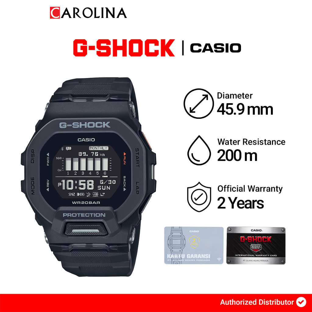 Jam Tangan Unisex Casio G-Shock GBD-200-1D G-Squad Black Digital Dial Black Resin Band