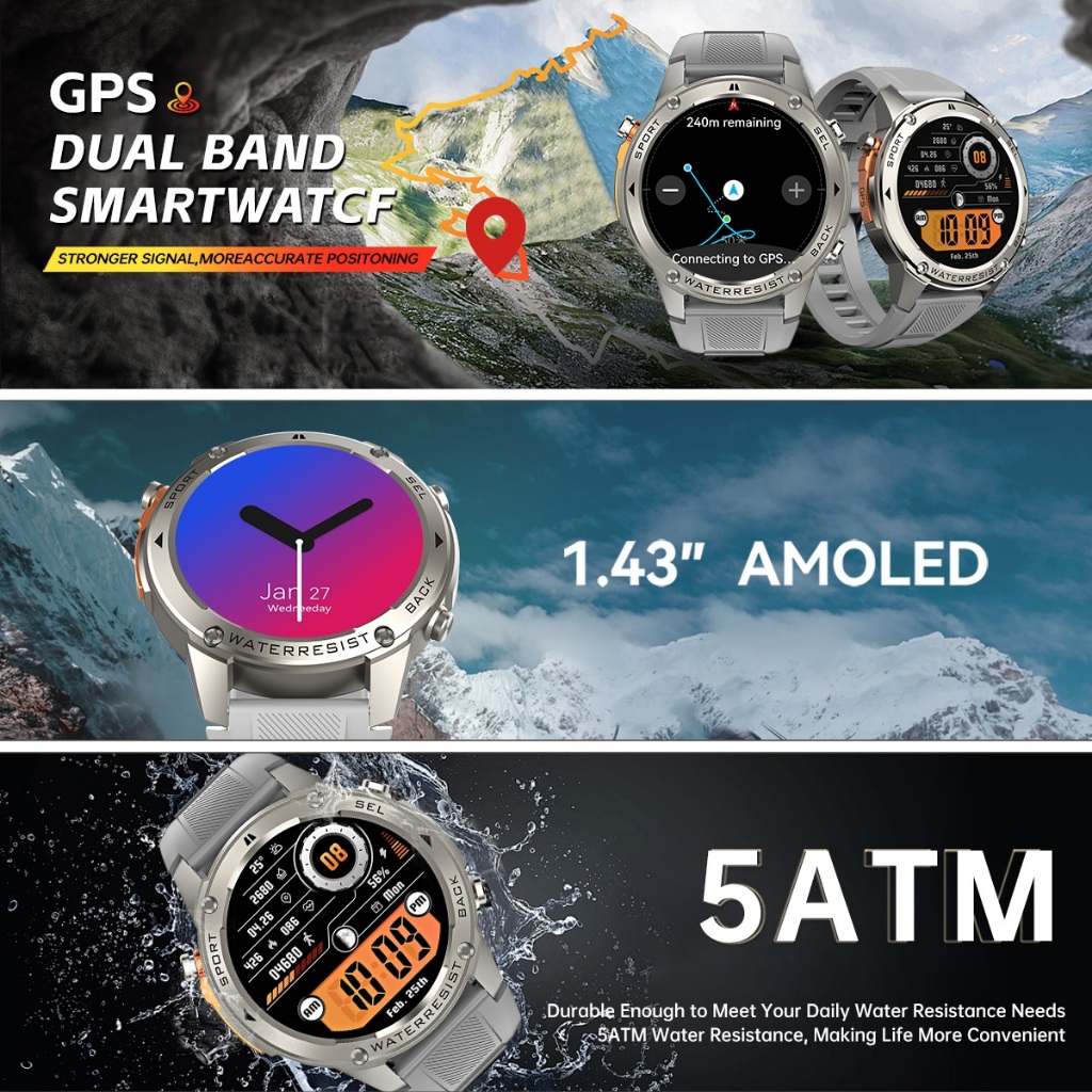 SKMEI DM56 Smartwatch GPS Map | 1.43 Amoled | 5ATM Waterproof | Compass | Altitude Air Pressure jam olahraga / Smartwatch bahasa Indonesia