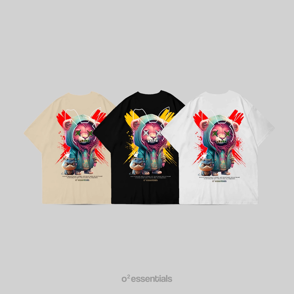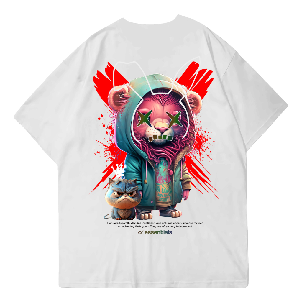 O2 Essentials Kaos Oversize Premium Pria dan Wanita - Lion X, Atasan Pakaian Cotton Combed
