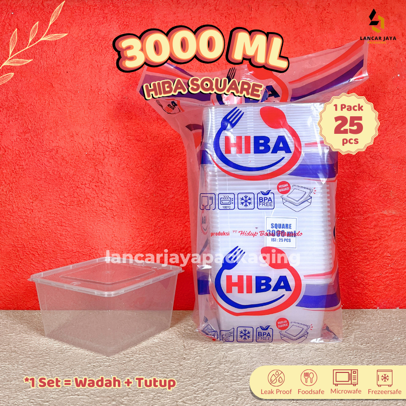 HIBA Thinwall Square Kotak Makan Plastik Persegi Wadah Nasi Berkat Kue 1000 1500 2000 2400 3000 ml