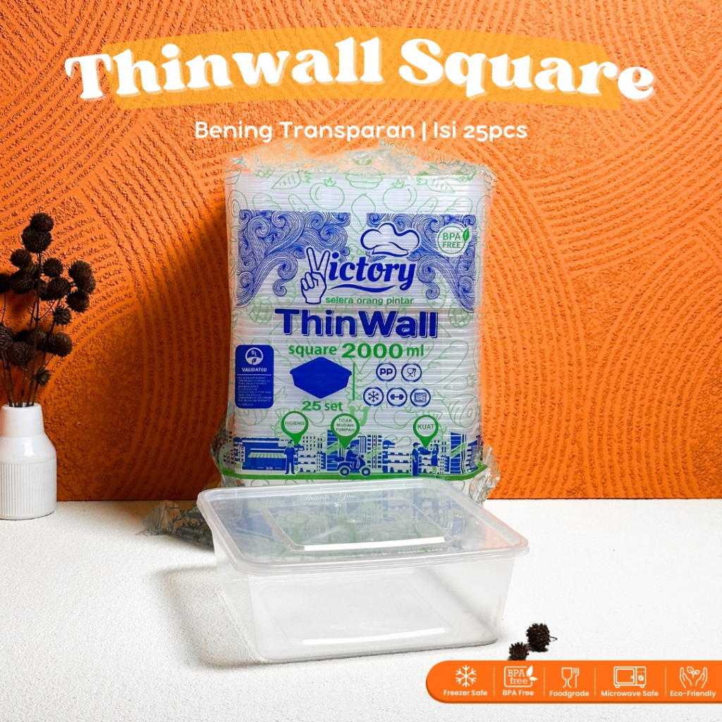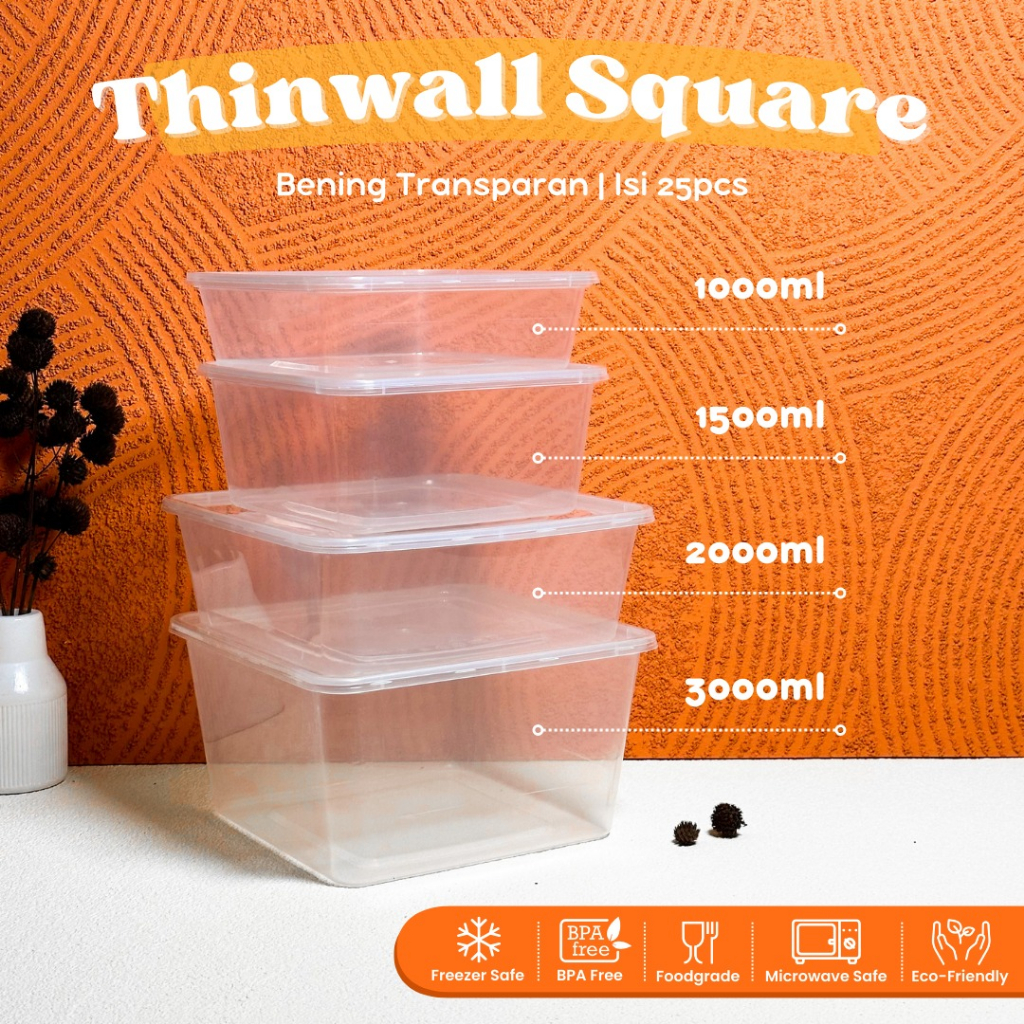 [ISI 25 PCS] Thinwall Victory Square 1000ml 1500ml 2000ml 3000ml / Kotak Makan Plastik Persegi / Food Container Food Grade