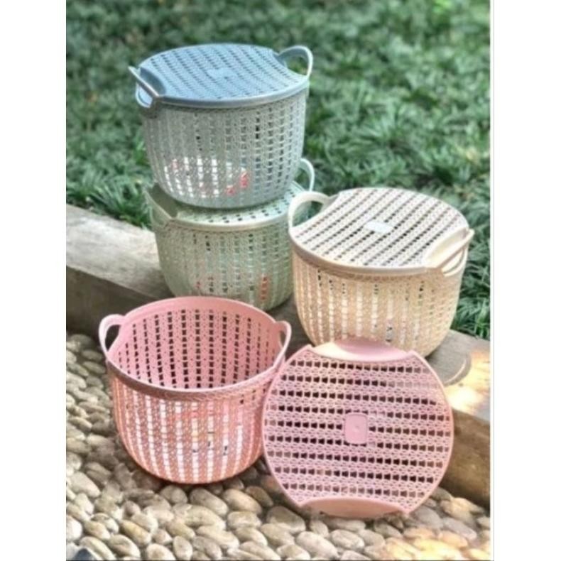 Keranjang Topas 12pcs Tutup Keranjang Souvenir Serbaguna Rotan Tutup Plastik