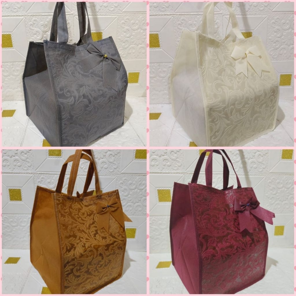 TAS HAJATAN SPUNBOND PITA EMBOS NEW UKURAN 22 X 22.TAS KOTAK NASI/TAS PARSEL/TAS SOUVENIR/TAS ULTAH/GOODIE BAG