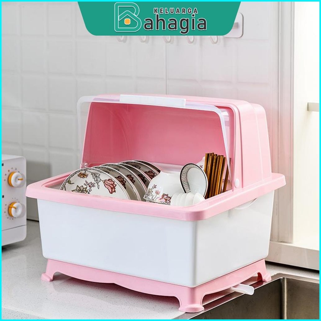 Kb Rak Pengering Air Piring Mangkok Rak Piring Dapur Plastik Dengan Tutup Sendok Garpu Multifungsi