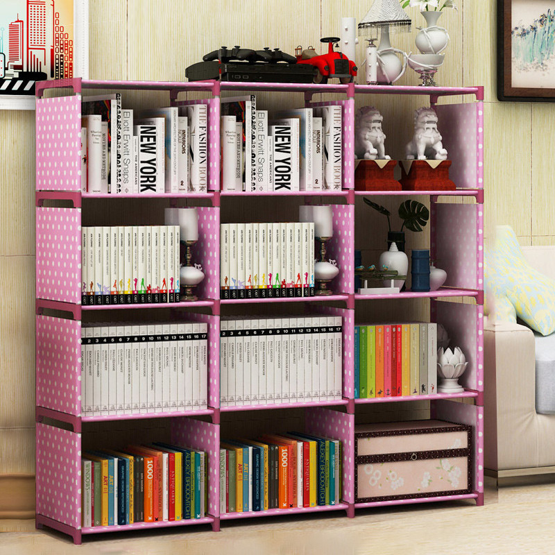 Rak Buku 3 Baris Portable DIY Rak Buku 4 Susun Serbaguna Tingkat Rak Penyimpanan Mainan Serbaguna